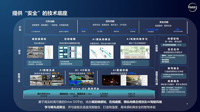 安全是技术开发的根本前提和信任起点。在技术底座筑基方面,上汽乘用车摒弃简单的硬件堆砌,转而进行“精准配置”,依托高感知传感器与同级体验最优的地平线J6E域控,以及高实时、高可靠的Drive OS底层软件平台,结合端到端感知、在线建图、AI横纵向耦合等先进算法,通过AI数据挖掘,数据筛选效率提升100倍,从源头确保技术底座的稳定与可靠,最大限度规避了因成本控制可能带来的安全性能妥协。