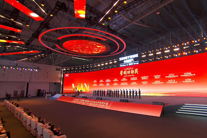 2025年,中国重汽再次创造出了辉煌的业绩:“全年汇总收入预计突破2250亿元,同比增长17%;整车销量预计突破45万辆,同比增长25%。”“创造出了重卡销量全球第一的耀眼成绩。”大会上,中国重汽党委书记、董事长刘正涛怀着激动的心情,报告了过去一年取得的成绩。