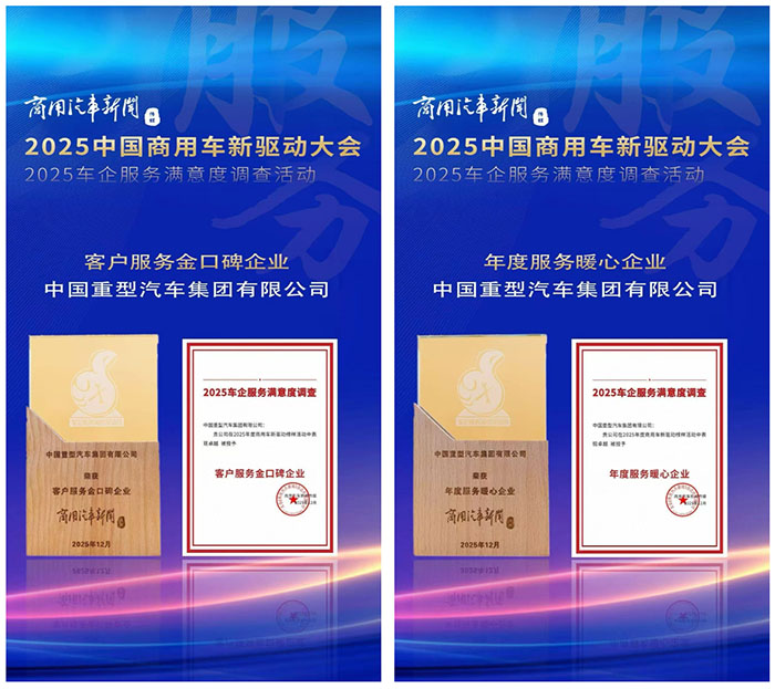 在商用车行业从产品驱动迈向价值驱动的关键期,企业服务的深度与温度,正成为衡量品牌高度的核心标尺。近日,中国重汽在2025年度商用车新驱动榜样活动中连续斩获“客户服务金口碑企业”和“年度服务暖心企业”两项殊荣。这是行业对其卓越服务体系的权威认证,更是万千卡友的口碑加持与信赖托付。中国重汽不仅为客户创造了可量化、可感知的理性价值,更将其升华为有质感、有回响的温度。