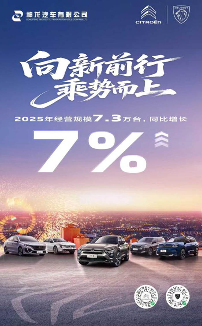 2025年,神龙汽车通过营销深化、品质坚守及协同赋能等系统化举措,推动经营实现稳健增长,同比增长7%,整体发展态势持续向好。不仅体现了企业的增长韧性,也为神龙汽车的复兴之路奠定了坚实基础。