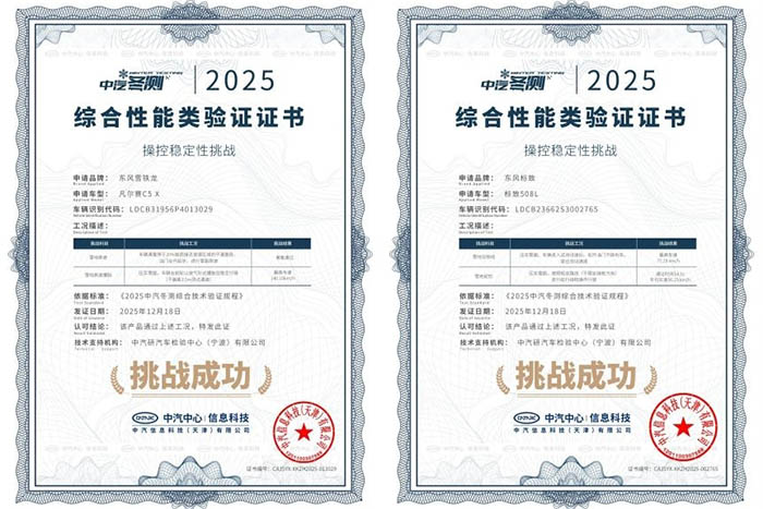 产品层面,神龙汽车旗下车型更经受住了严苛考验。在中汽中心进行的夏季高温测试中,东风雪铁龙凡尔赛C5 X凭借在健康和操控安全层面的卓越表现,勇夺“健康与操控双安全”权威认证,令业界瞩目;年末,东风雪铁龙凡尔赛C5 X与东风标致508L又在极寒驾控安全验证中,凭借卓越的操控稳定性双双斩获“操控稳定性挑战”认证证书,展现了法系底盘技术应对极端环境的深厚功底。这些权威背书,不仅验证了神龙汽车产品在极端环境下的可靠性与安全性,更强化了“法式驾控”与“安全可靠”的核心品牌价值,成为赢得用户信赖的基石。