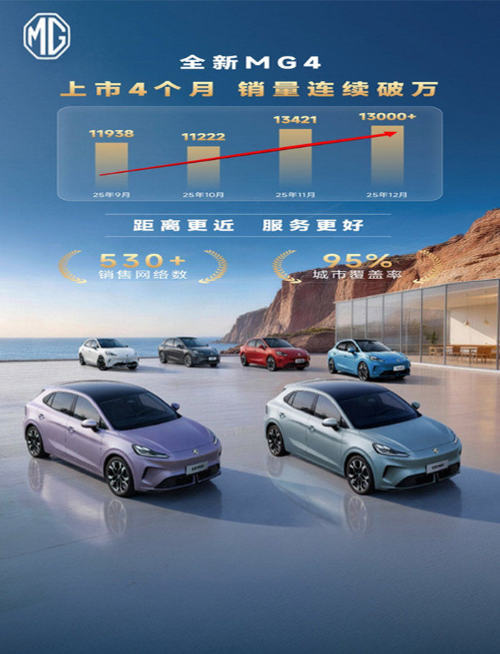 12月全新MG4热销超1.3万辆,上市4个月销量连续破万