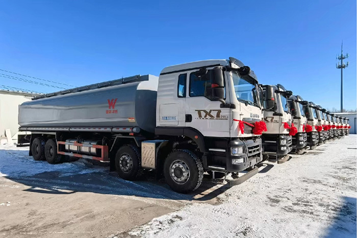 在中国重汽本轮交付版图中,呼伦贝尔的12台油田供液车尤为亮眼。作为整车一体化技术创领者,豪沃重卡针对油田复杂路况与极寒气候,打造高通过性、皮实安全、舒适节油的专属产品。高位全金属保险杠、抬高式水箱等设计有效提升车辆通过性,驾驶室“馈断式”后移技术筑牢安全防线,四点全浮设计兼顾舒适与节油,全方位适配油田作业需求。凭借定制化优势,豪沃油田专用车在“两桶油”体系用户及“三方车队”市场广受青睐,市占率持续攀升,用实力守护能源运输每一程,为首季开门红添力加劲。