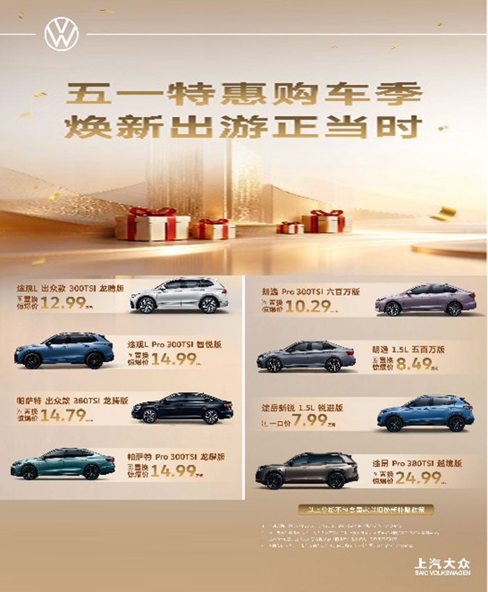 置换焕新,惠享五一!趁着假期,不妨前往上汽大众授权经销商,解锁专属置换福利,带着家人与热爱,奔赴一场说走就走的旅行,让德系品质陪伴每一段美好旅程!